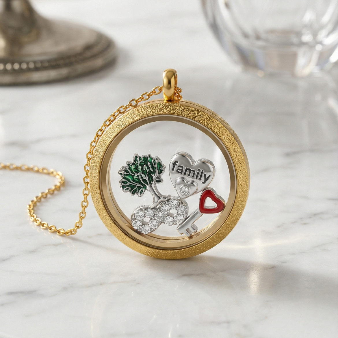 Cristal: Vidrio templado de alta transparencia y resistencia para una visibilidad nítida de los charms o recuerdos.