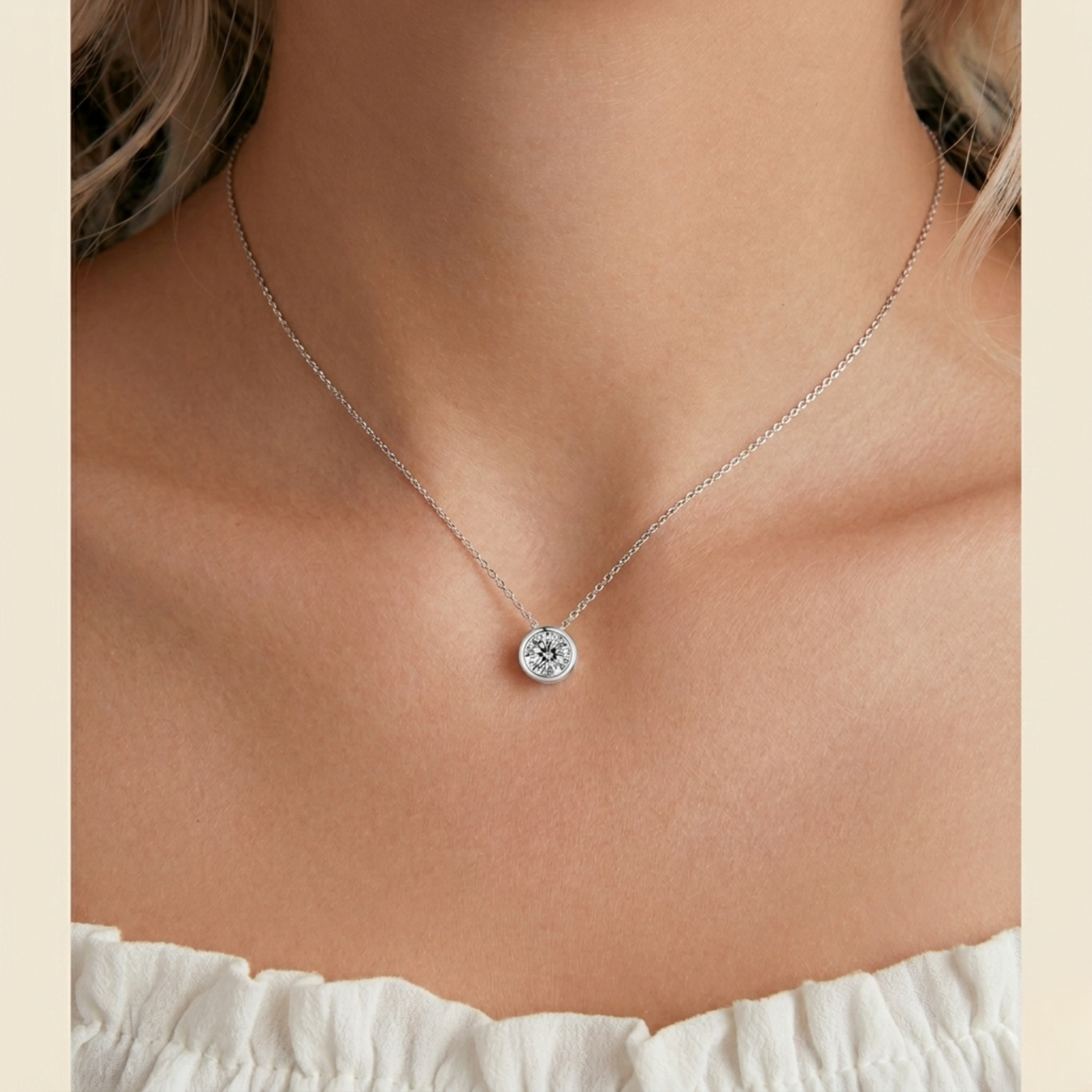 Gema: Moissanita de corte brillante. La moissanita es conocida por su dureza extrema y un índice de refracción superior al del diamante, lo que garantiza un destello inigualable de por vida.