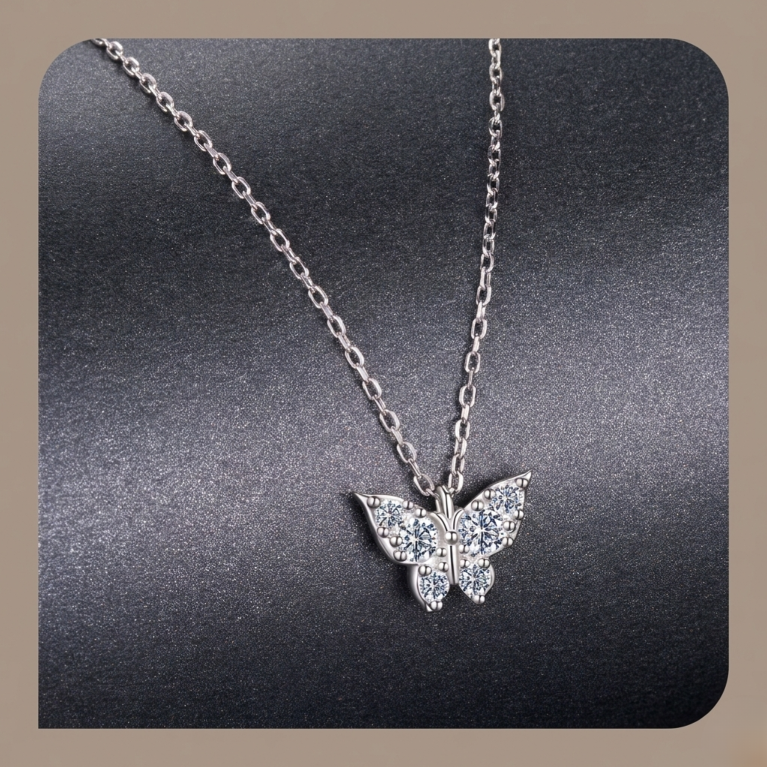 Collar de Moissanita y Plata S925 con colgante de Mariposa