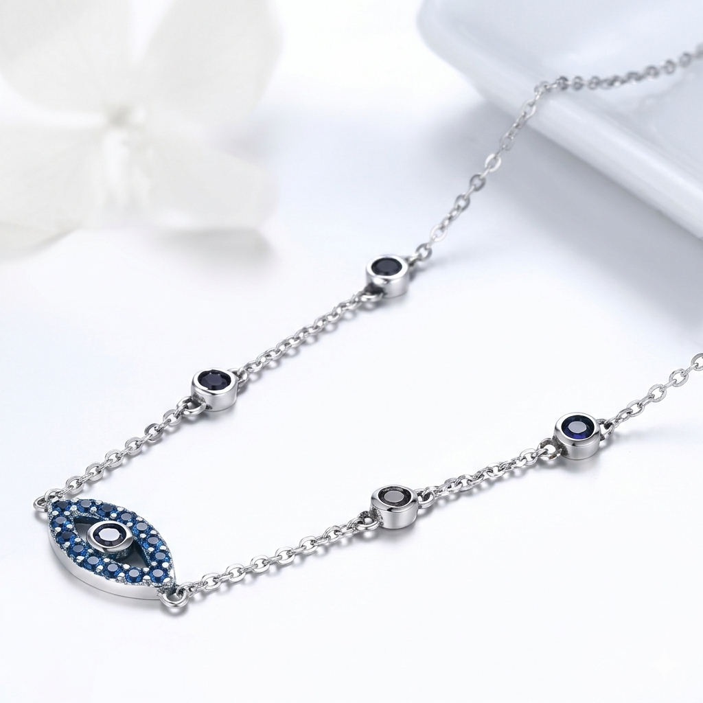 Collar Vintage de ojos de la suerte de Plata S925