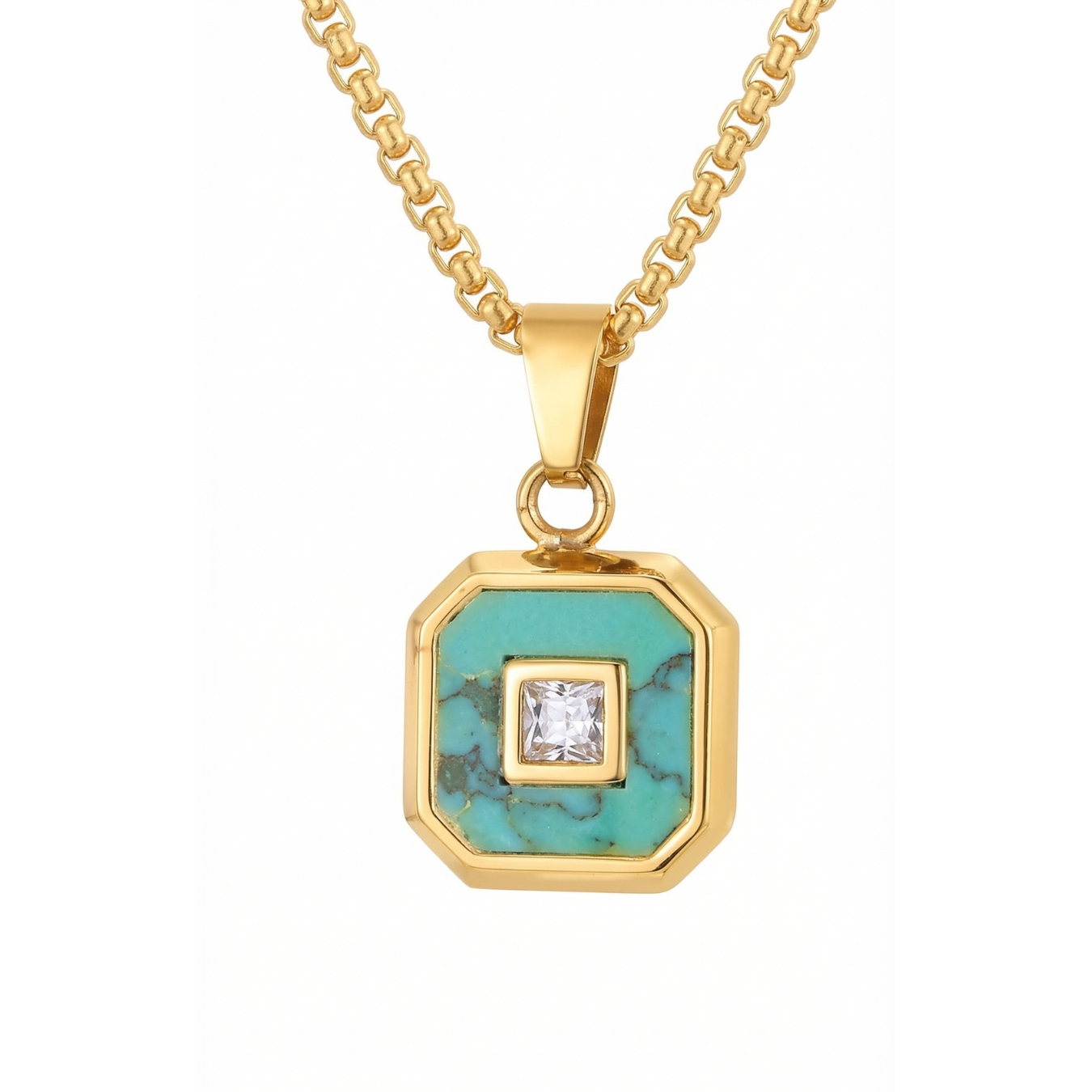Collares con Colgante Geométrico de Piedra Natural Verde